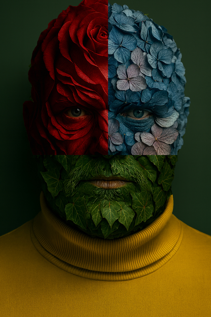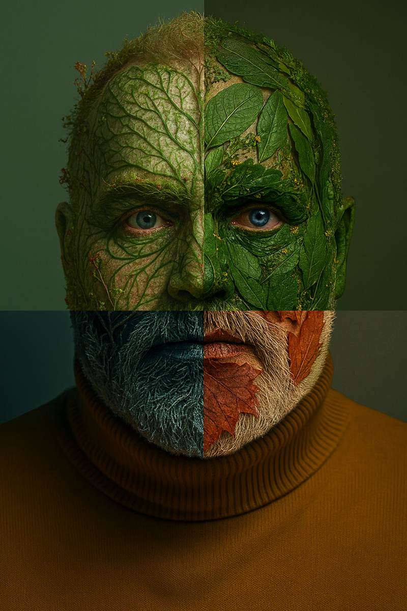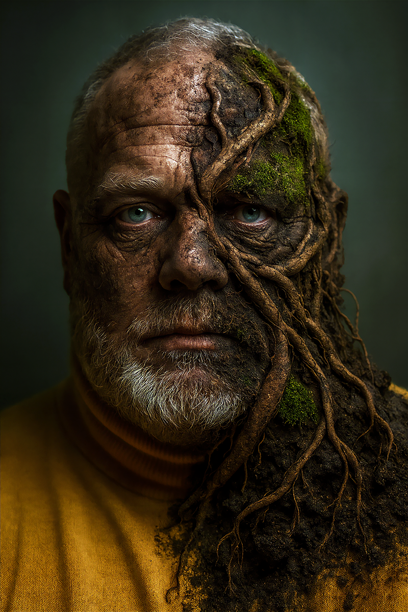 Die Serie verwebt biologische Realität mit futuristischer Mythologie und persönlicher Identität. Die Gesichtszüge bleiben erkennbar, doch aufbrechende Strukturen erweitern das Menschliche und laden es mit neuer Symbolik auf. Natürliche und spirituelle Kräfte wirken nicht nebeneinander, sondern durchdringen einander.