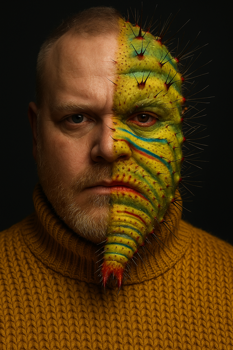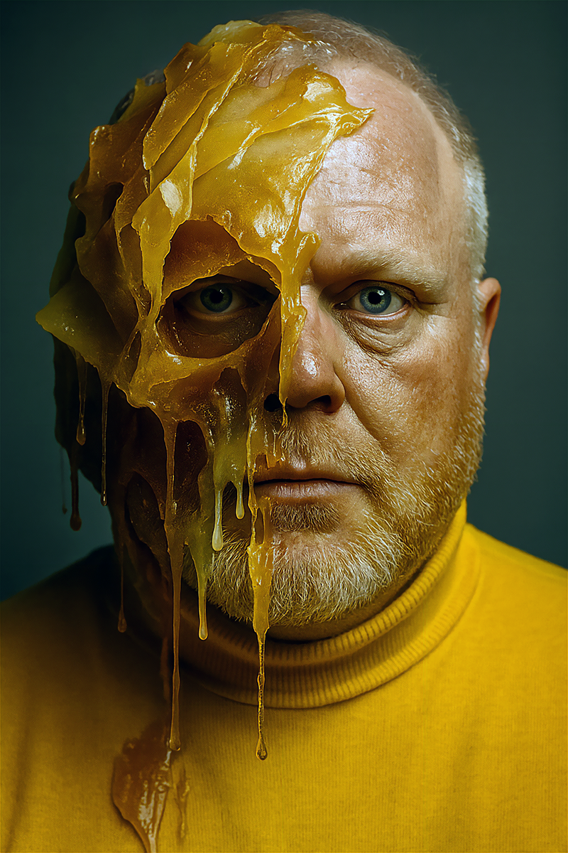 In Metamorphosis mache ich mein Gesicht zur Projektionsfläche für Wandel, Erinnerung und Identität. Jedes Porträt offenbart eine andere Facette des Menschlichen. Zwischen Zerfall und Erneuerung, Verletzlichkeit und Transformation.